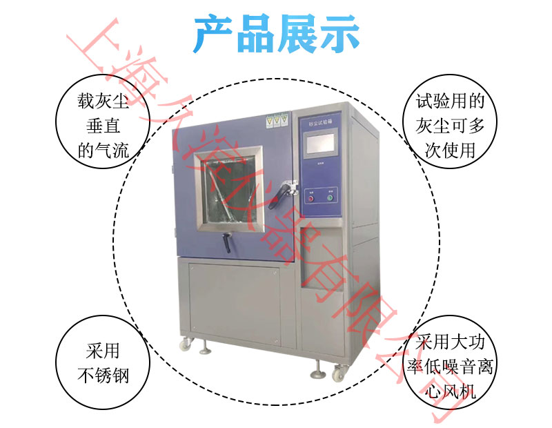 沙塵試驗(yàn)箱模擬自然界風(fēng)沙氣候?qū)Ξa(chǎn)品的破壞性,適用性檢測產(chǎn)品的外殼密封性能,主要有于外殼防護(hù)等級標(biāo)準(zhǔn)中規(guī)定的IP5X和IP6X兩個等級的試驗(yàn)。設(shè)備有載灰塵垂直循環(huán)的氣流,試驗(yàn)用灰塵可以循環(huán)使用,整個風(fēng)道采用進(jìn)口高級不銹鋼板制作,風(fēng)道底部與錐形料斗接口連接,風(fēng)機(jī)進(jìn)出風(fēng)口直接與風(fēng)道連接,再在適當(dāng)?shù)奈恢蒙蠈⒐ぷ魇翼敳繑U(kuò)散口接入工作室體,形成“O”型閉式垂直吹塵循環(huán)系統(tǒng),使氣流能順暢地流動,*大限度的使塵土分散均勻。