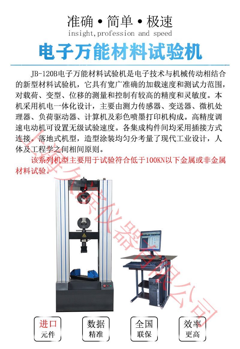 JB-120系列電子萬(wàn)能材料試驗(yàn)機(jī)是電子技術(shù)與機(jī)械傳動(dòng)相結(jié)合的新型材料試驗(yàn)機(jī),它具有寬廣準(zhǔn)確的加載速度和測(cè)試力范圍,對(duì)載荷、變型、位移的測(cè)量和控制有較高的精度和靈敏度。本機(jī)采用機(jī)電一體化設(shè)計(jì),主要由測(cè)力傳感器、變送器、微機(jī)處理器、負(fù)荷驅(qū)動(dòng)器、計(jì)算機(jī)及彩色噴墨打印機(jī)構(gòu)成。高精度調(diào)速電動(dòng)機(jī)可設(shè)置無(wú)級(jí)試驗(yàn)速度。各集成構(gòu)件間均采用插接方式連接。落地式機(jī)型,造型涂裝均勻分考量了現(xiàn)代工業(yè)設(shè)計(jì),人體及工程學(xué)之間相間原則。