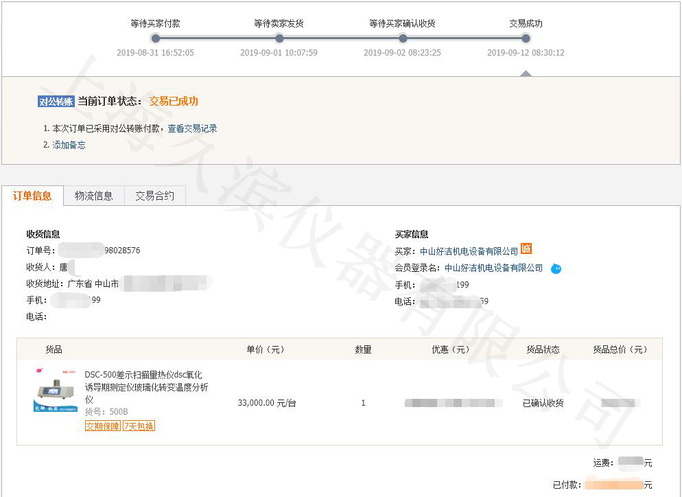 中山好潔機(jī)電設(shè)備有限公司選購我司差示掃描量熱儀