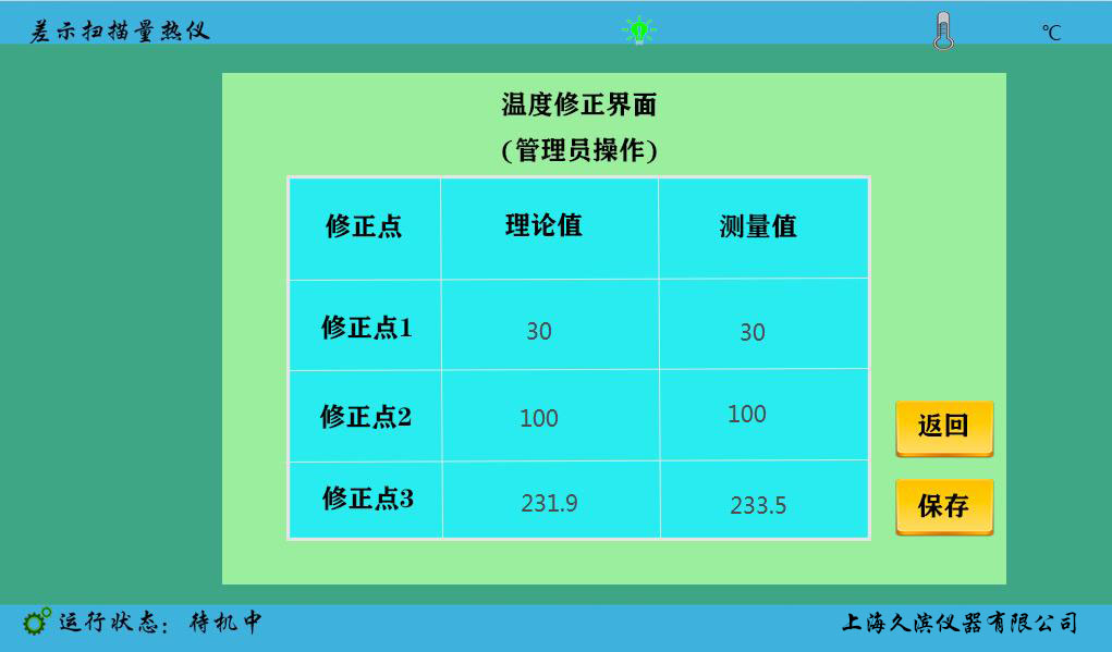 12、參數(shù)標(biāo)準(zhǔn):配有標(biāo)準(zhǔn)校準(zhǔn)物(錫),帶一鍵校準(zhǔn)功能,用戶可自行對(duì)溫度進(jìn)行校準(zhǔn)